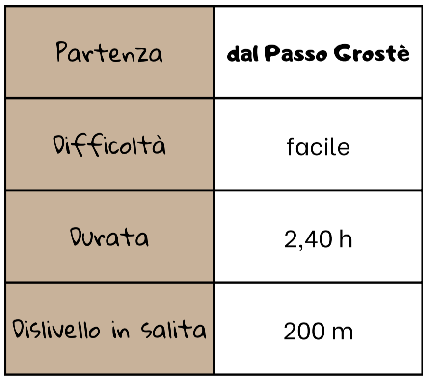 Dal parcheggio Campo Carlo Magno si sale con la cabinovia fino al Rifugio Stoppani nei pressi del Passo del Grostè.